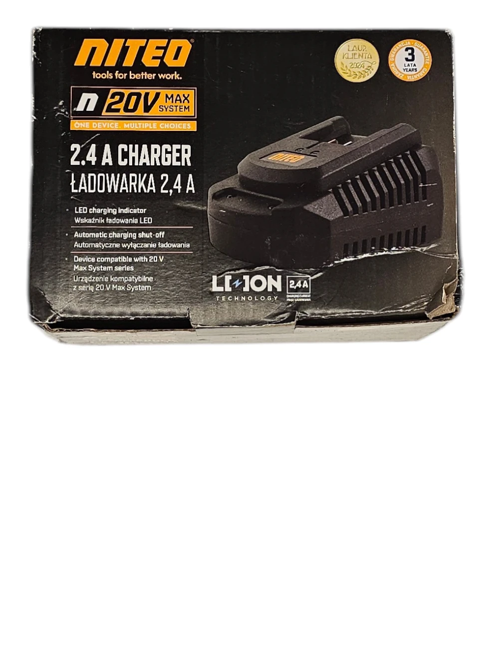 Ładowarka do akumulatorów NITEO 20V 2,4A CLV-2102400 – szybkie i bezpieczne ładowanie Twoich narzędzi
